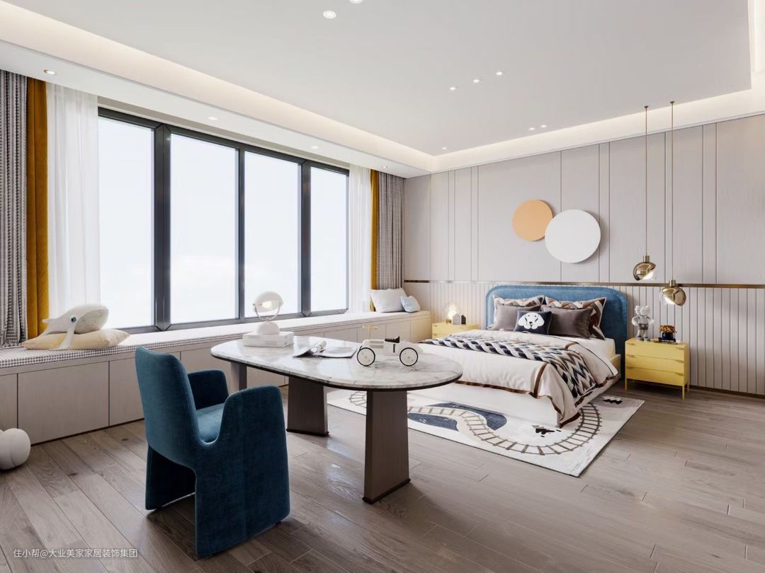 儿童房良好的采光,加上大面积的飘窗、造型别致的桌椅、趣味性的装饰,共同创造出温暖梦幻的空间。