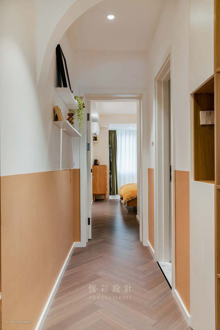 常规的室内门一般在2.05m左右,当我们根据吊顶去做门洞的加高,在不改变门洞宽度的前提下,空间明显有了显高的效果。