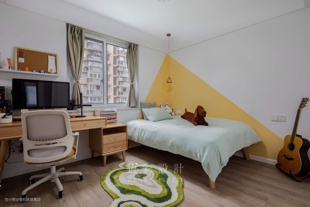 几何装饰墙的涂刷也是进来讨论颇多的显高手法,相比前面两种形式,几何图案的装饰性会更强。