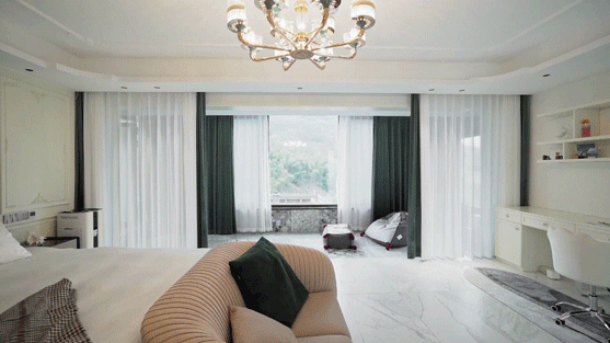 主卧以套房形式呈现,配备有独立卫生间及强大衣帽收纳系统,体现出“多功能、多享法”的高品质生活需求。
