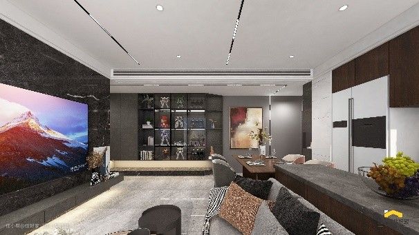 1:崇尚现代极简,整个空间以灰色,深色为主色调
