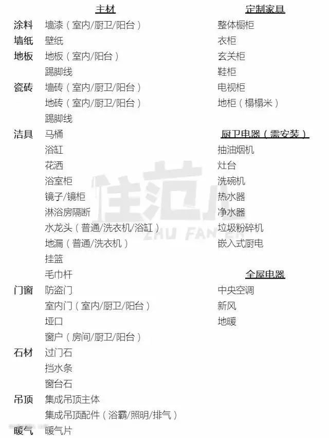 - 如果选择了半包,你需要购买什么主材呢?