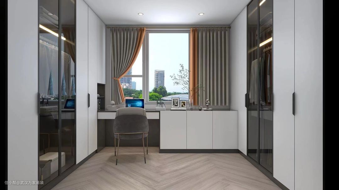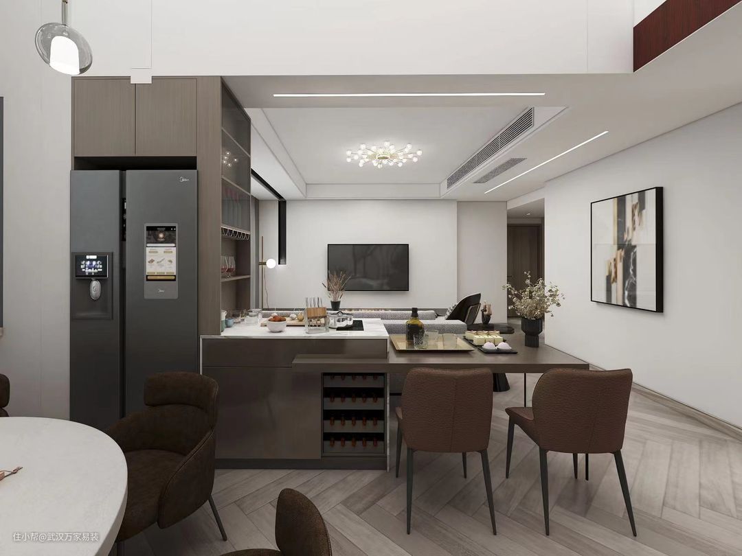在硬装上采用没有过多地设计,只是把吊顶常用的筒灯设计换成的灯带,没有做复杂的背景墙,只有一个从吊顶竖下来的一小点设计,既不抢眼又暗搓搓的凸显设计感!