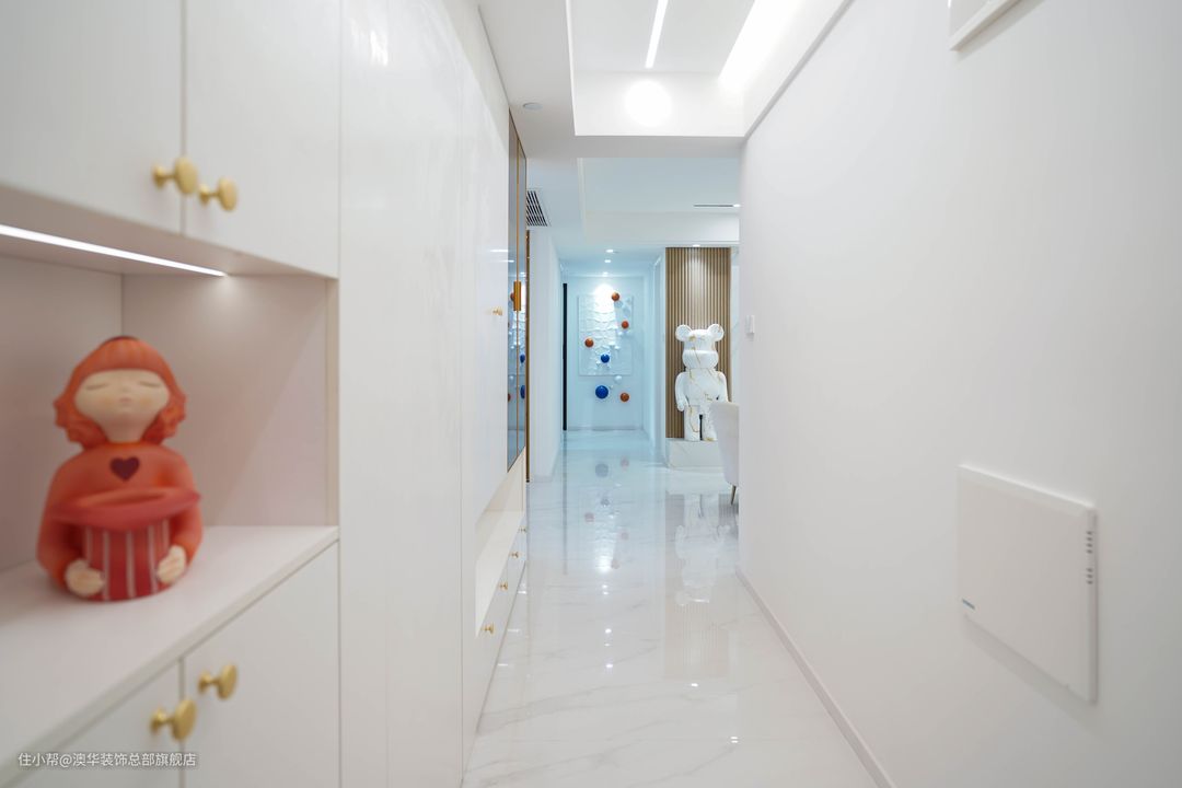 当入墙式柜体与墙体几乎完全贴合的时候,整体空间看起来会更平整开阔,质感也比凸起显贵不少。