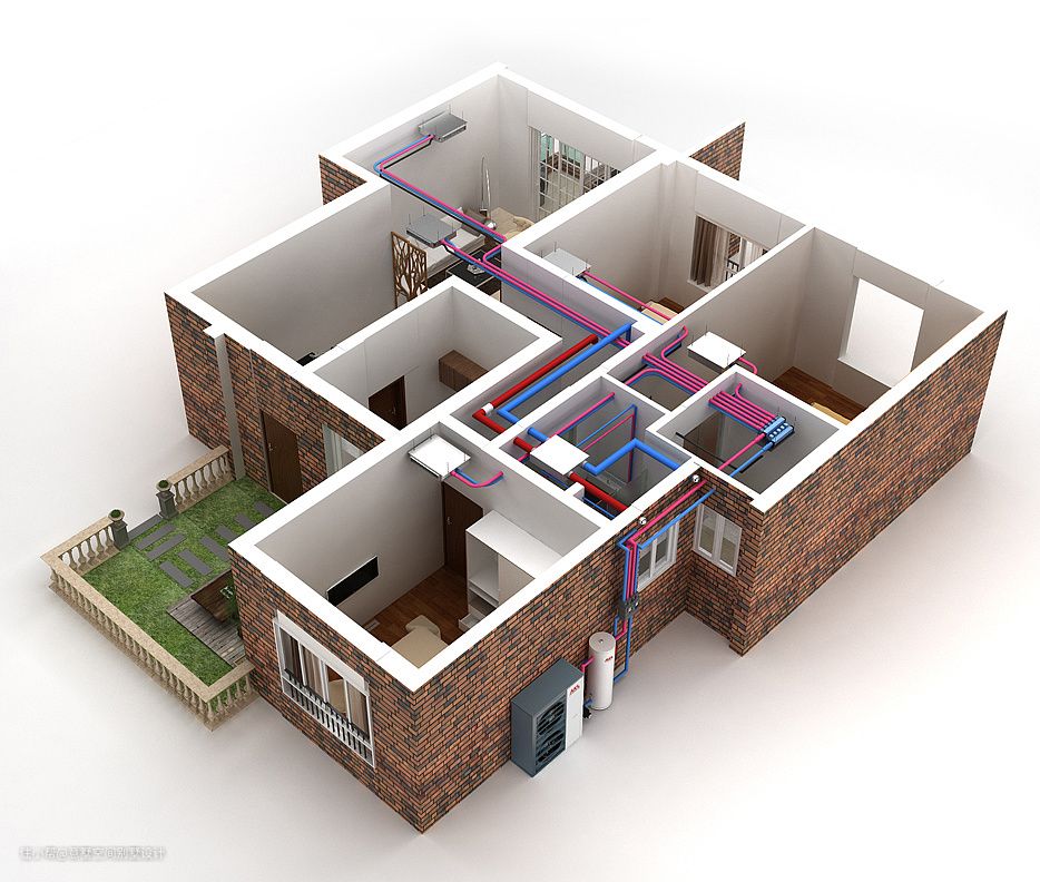别墅新风系统设计时,要充分考虑每个房间的透气性和通风性。对于别墅类型,一般设计师会在设计中使用,经常使用餐厅、起居室、卧室等房间通过走廊通过排气口通过新风系统排放到室外。不常用的地下室和储藏室的废气来自公共浴室、走廊等处通过静音风机排到室外。