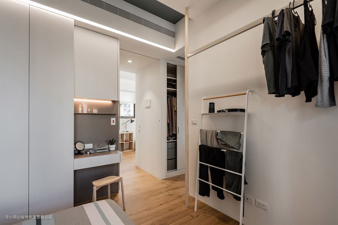 步入式的衣帽间也能让窗户引进的自然光线更顺畅地进入到室内,卧室的采光舒适感更强。