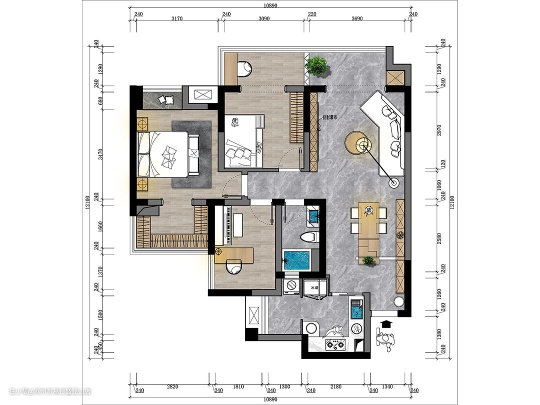 本案例业主自己是搞工装施工的,常住三口人,一个4岁的小男孩,此房子用于前期过渡居住使用,即客户要求,满足客户需求的同时,来创造更多的可能性。
