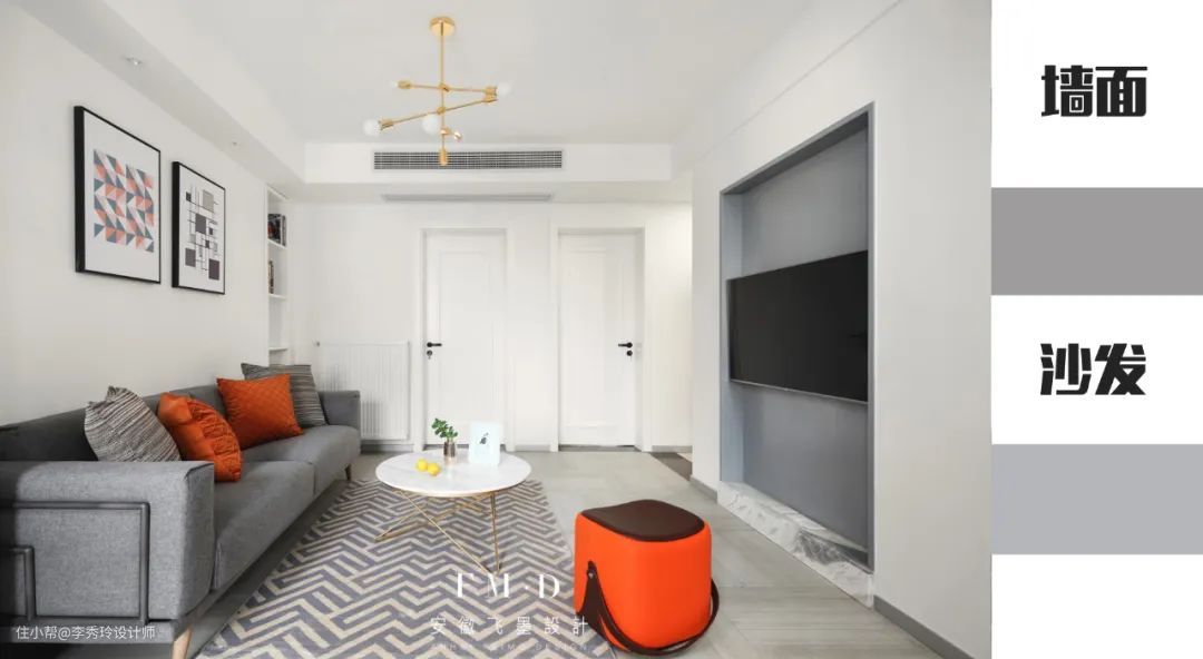 墙面可以为拼色,沙发也可以跟着为双色: