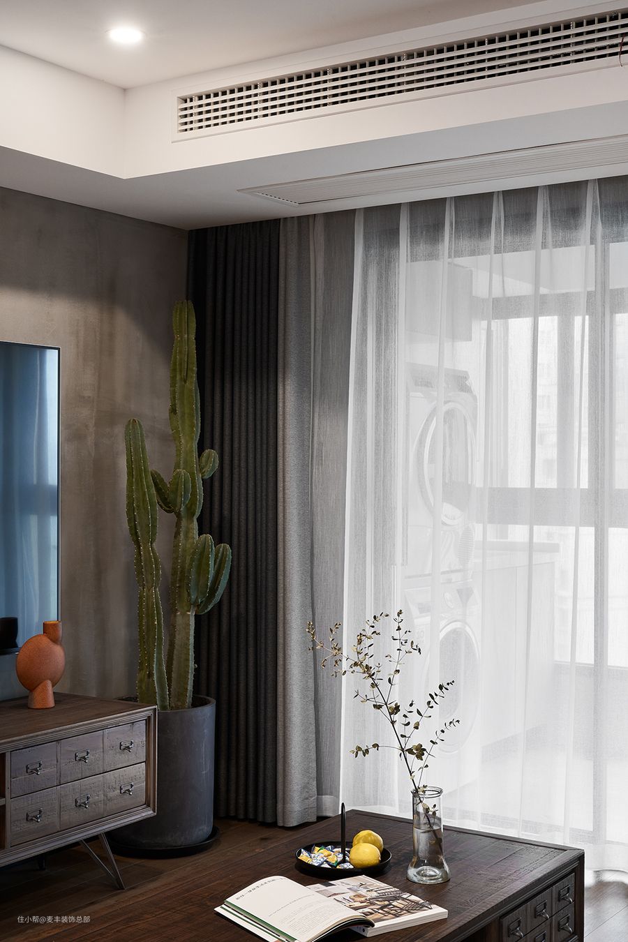 仙人掌是家庭养花中十分受欢迎的一种盆栽,好养还美观。大型的仙人掌盆栽和工业风家装居然369度的融合,景观独到。