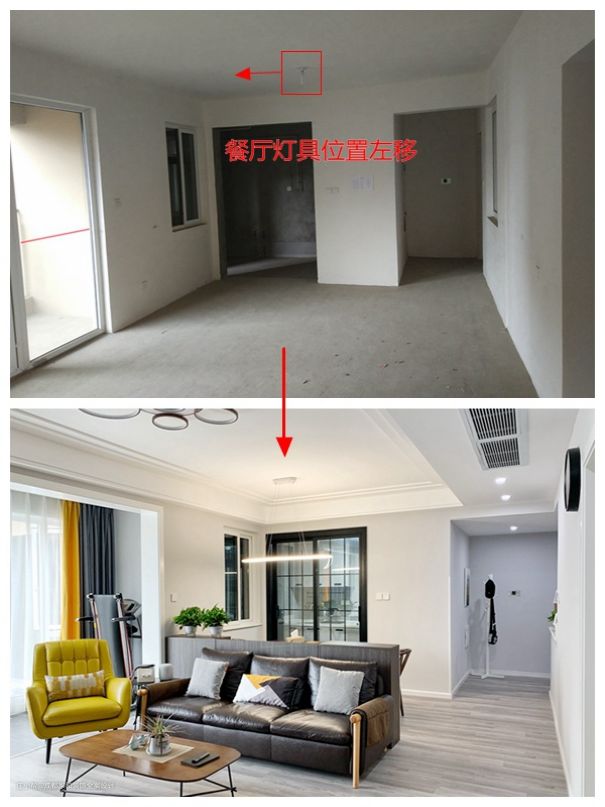 局改,也叫断点改造,是指保持原有的线管和电线位置不变,然后根据设计方案新增回路、新增开关插座或者移动开关插座位置,在现有的水电线路上进行完善,这种做法的最大优势就是省钱、省料、便于施工,但是接线涉及到新旧电路的交接问题,出于安全考虑对工人师傅的要求较高。如下图所示,房子原有的电路质量不错且位置合理,只是餐厅灯具位置需要调整,那么只需要向左接线即可。
