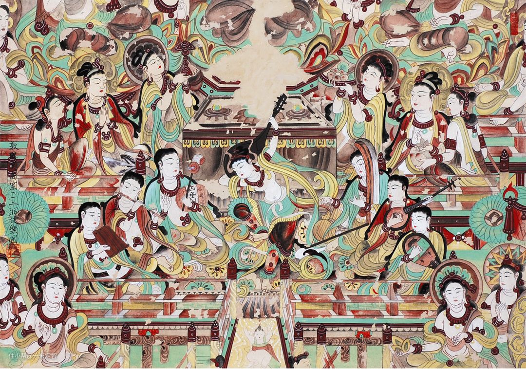 敦煌石窟中的佛教艺术壁画是中国传统艺术的经典。其中,美轮美奂的莫过于飞天女神,不仅仅是敦煌经典的壁画形象,还是敦煌最美的艺术形象。