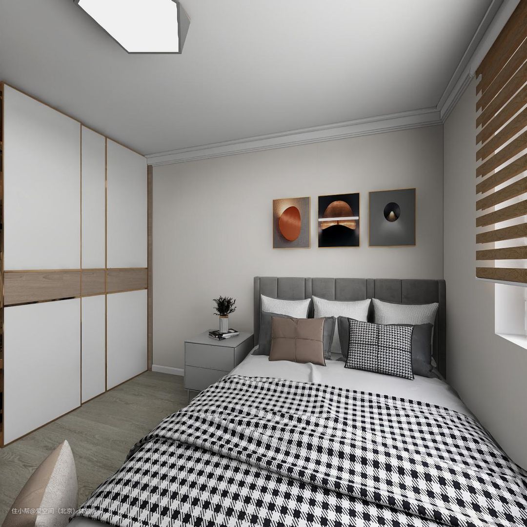 这个卧室偏向于北欧原木风格的,床品、设计、装修都很温馨,可以满足大家对卧室温暖、舒适的需求。旁边靠墙做通顶大衣柜满足收纳问题,衣服再多也不用发愁。