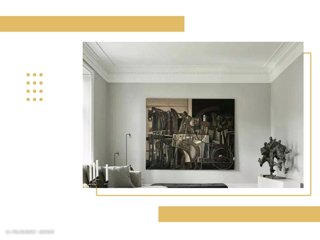 一 石膏线。石膏线是用简单的线条去装饰天花,与北欧、法式风格非常相配,是一种常见的天花板元素,会让家具与其产生非常强的设计感,不仅性价比高,施工也简单,值得大家尝试。