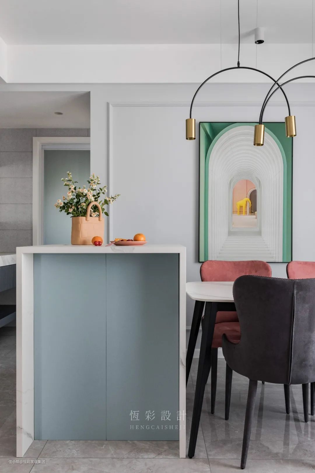 轻奢风遇上仿大理石瓷砖,高级配色搭配细腻纹理,轻松将空间的气质感拿捏住,精致且优雅。