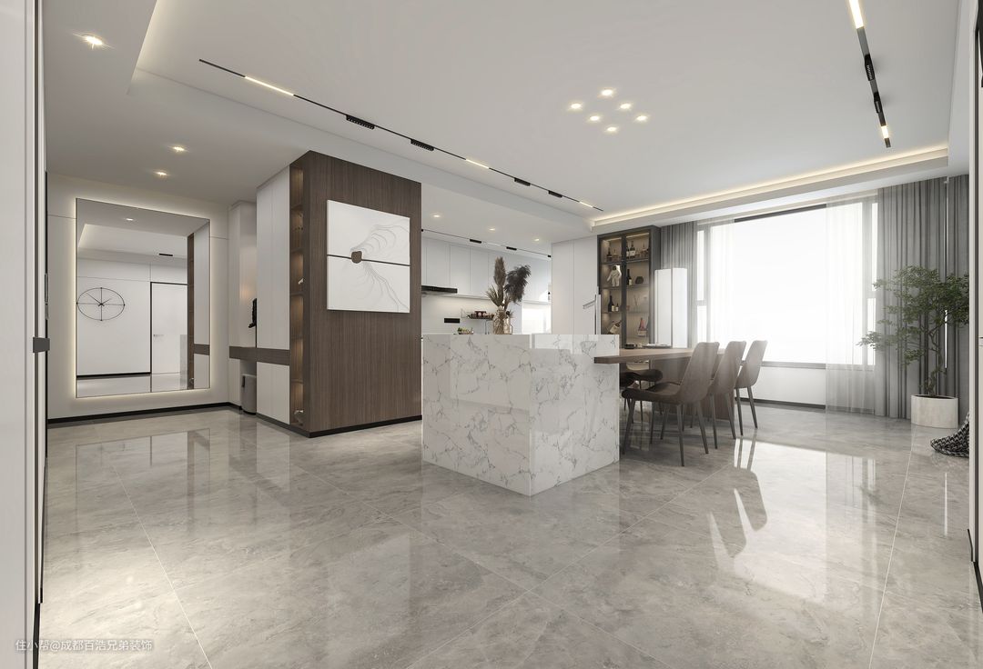 6、餐边柜是很有必要的,餐厨区的杂物是最多的,餐边柜可以储物、备餐,减轻厨房和餐桌的压力,让空间更加整洁干净。
