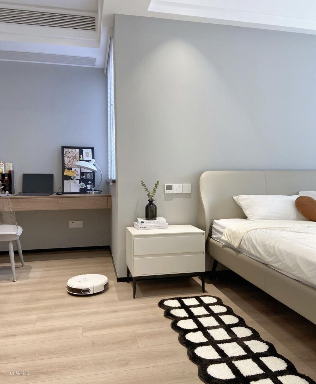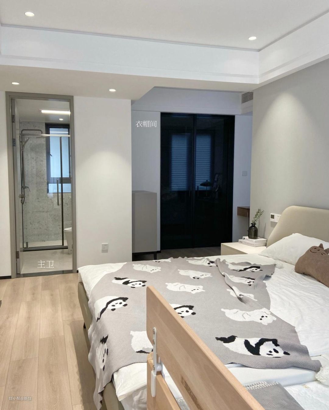 所以,她将原本相邻的主次卧合并起来,不仅额外腾出了衣帽间,还让室内空间大大增加。