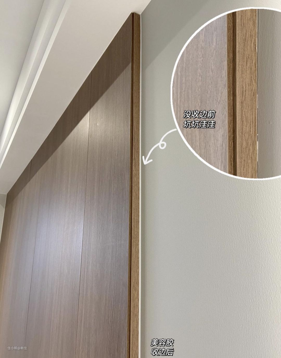 屋主说:如果我爸在这,根本不会同意我全屋花两千多做美容胶收边的,毕竟工人在施工时,胶已经打过一次了。