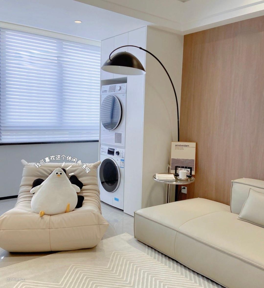 所以,屋主坚持买了烘干机,日常衣物洗完就直接烘干收纳,烘完的衣服干燥柔软,况且家里的日晒时长都是有限的,秋冬季节晒几天都干不了,反而容易滋生细菌。