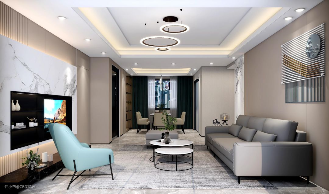 白色大理石背景墙纹理自然,增添几分雅致古韵,CBD家居·白金 | BS006-A单椅,水蓝色清爽可人,丰富视觉观感,更显灵动,将居所的色彩搭配美学尽致展现。