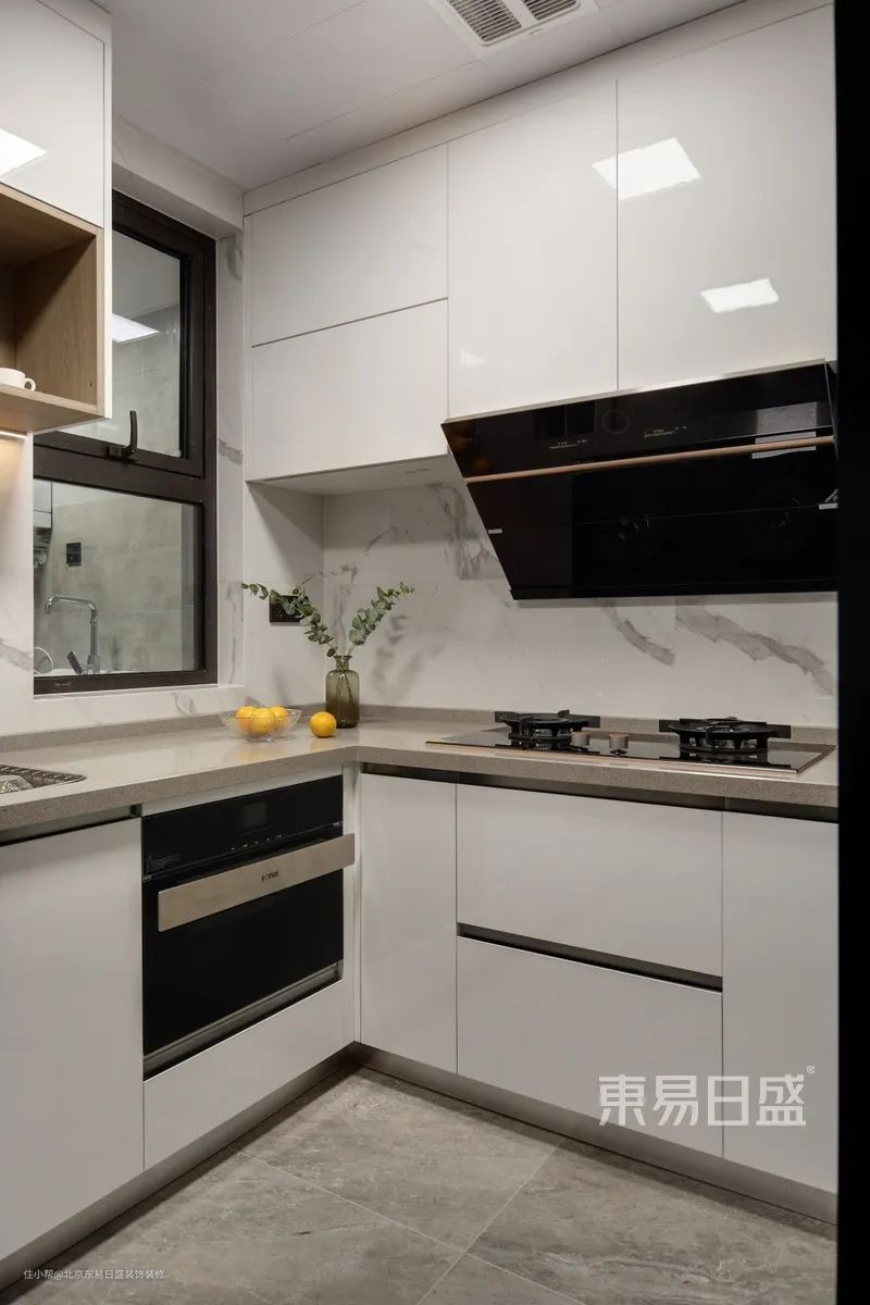 装修建议:做饭机会不多的家庭可以尝试开放式厨房,改善簇拥的环境。厨房尽量增加储藏空间,满足收纳需求。充分利用吊柜和地柜的空间,可以选用日系橱柜下拉篮、转角怪物等。
