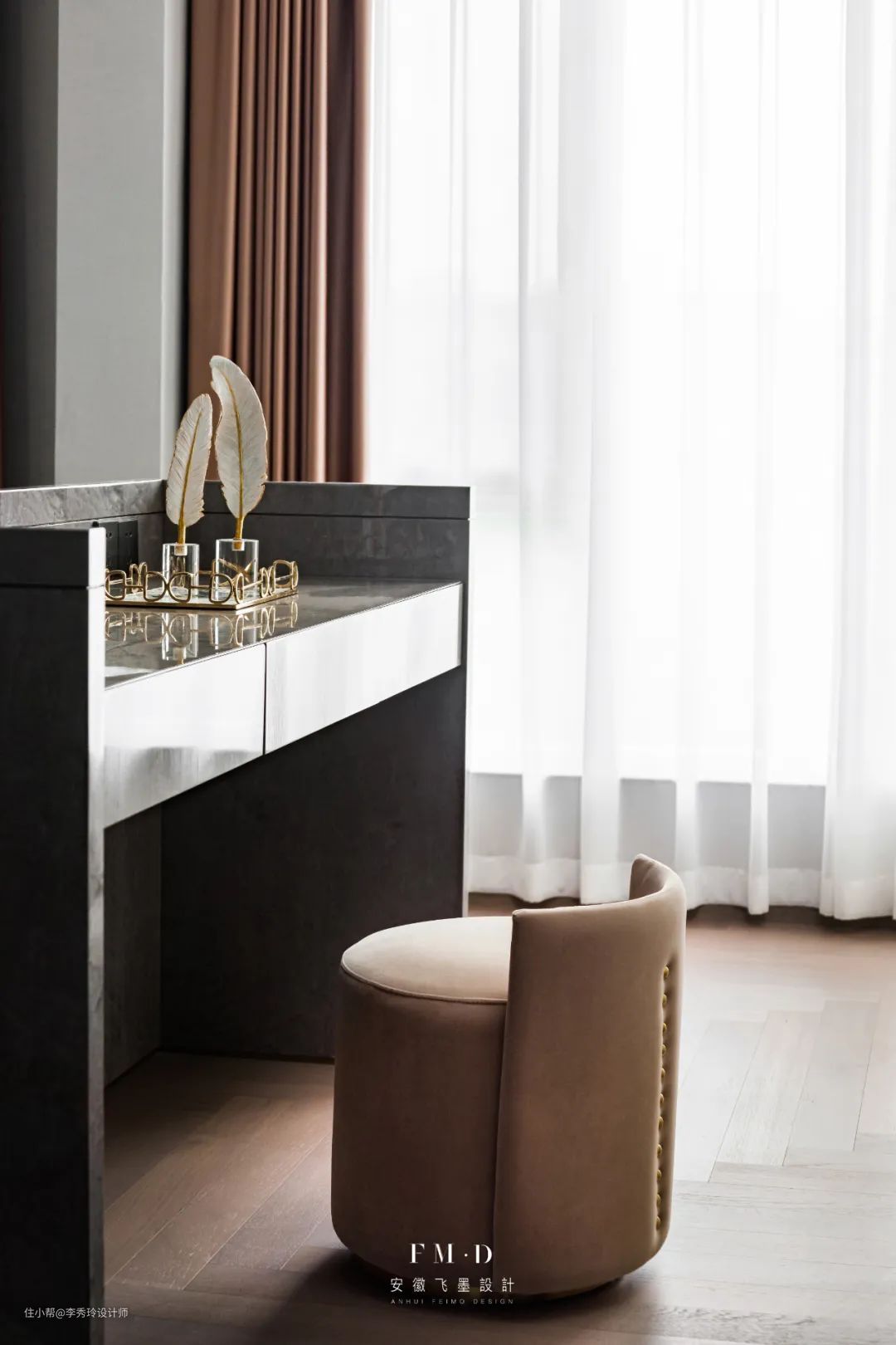 在【铂悦庐州府】的项目里,主卧的床尾是定制的独立梳妆台: