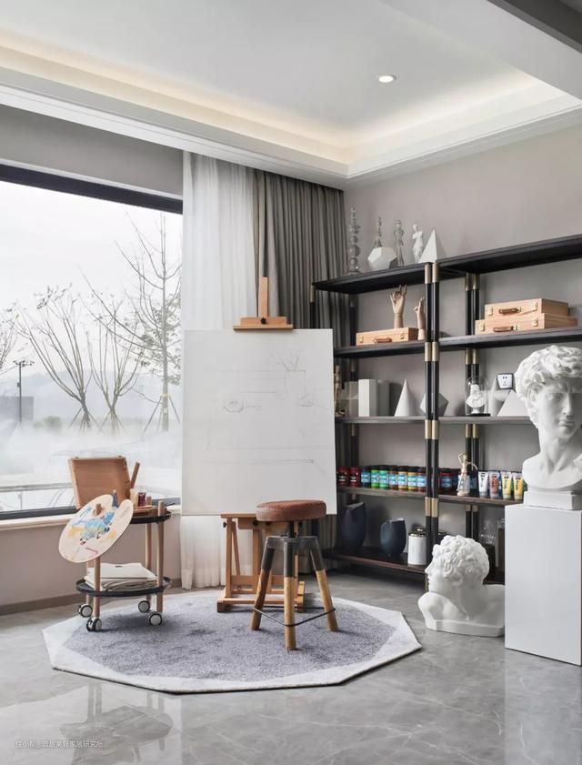 暗装,大概意思是在吊顶处预留一个内凹宽槽,把窗帘轨道、窗帘头、窗帘杆等组件以一种自然而然的方式隐藏起来,与吊顶同步施工衔接,加强顶面乃至整个空间的完整性。