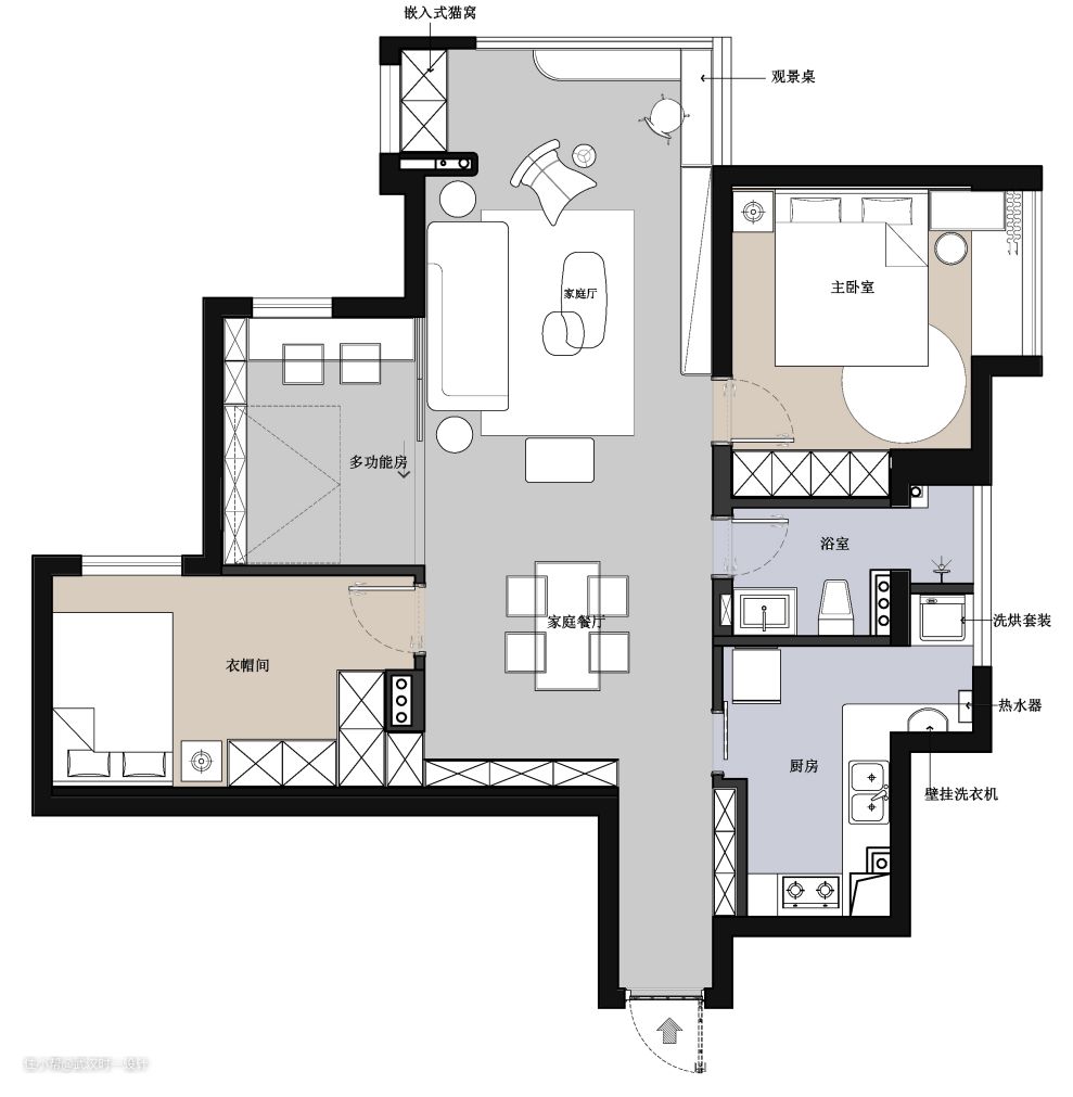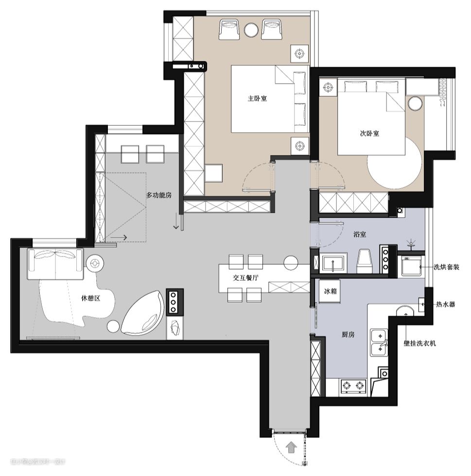 1.各空间面积不合理,厨房、卫生间、次卧空间太狭小