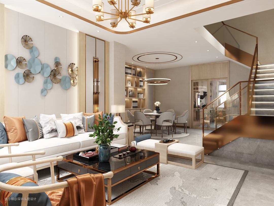 折叠别墅的起居室空间较大,是室内主要娱乐活动场所,也是呈现整体设计风格的场所,因此在叠拼别墅装修设计时,需要设计师对客厅的整体空间和局部空间的把握控制。别墅的层高与其他普通住宅相比要高一点,因此在设计时,我们都要考虑是否增加一个辅助照明、墙面装饰、灯光处理等手法来塑造别墅的空间感。