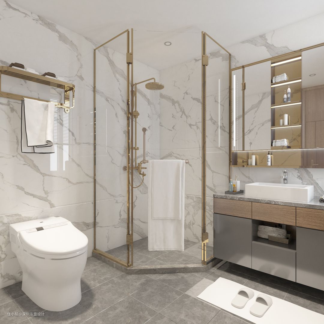 叠拼别墅的卫浴空间比一般住宅的宽敞,因此在进行整体空间规划设计时要通过不同对象来进行划分,比如主卫、客卫等,主卫的设计要能体现业主的文化生活品位,而客卫则要侧重于简洁舒适度。