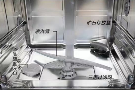 软水系统主要是为了防止自来水中一些自带的矿物质,在洗碗机中长时间积淀之后结成水垢,从而影响洗碗机功能的一个系统。