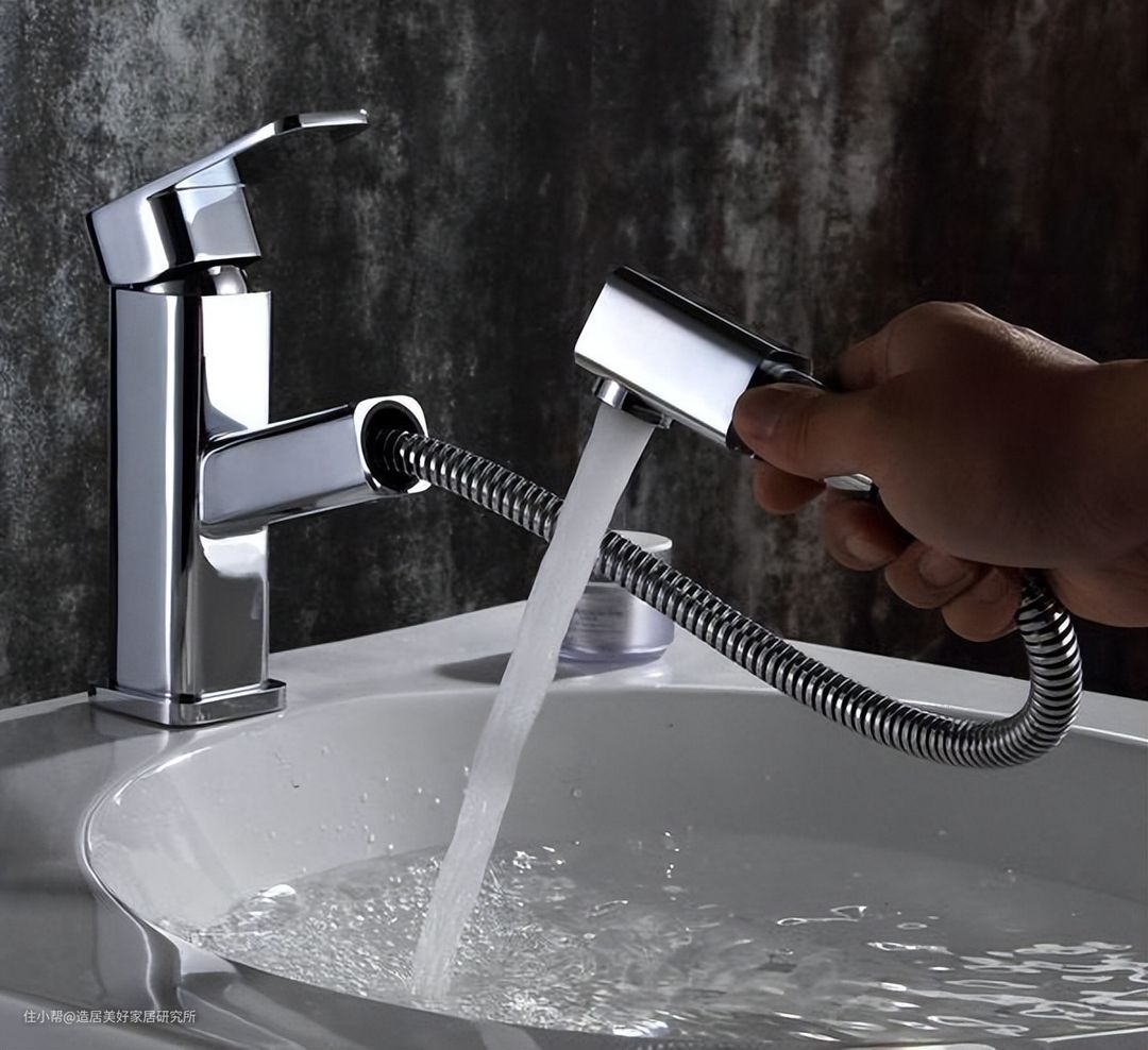 因此推荐安装抽拉式水龙头,扩大冲洗覆盖面积,洗头或者洗其它东西都很方便,而且还可以反向旋转出水口,洗漱更方便,可以不用刷牙杯了!