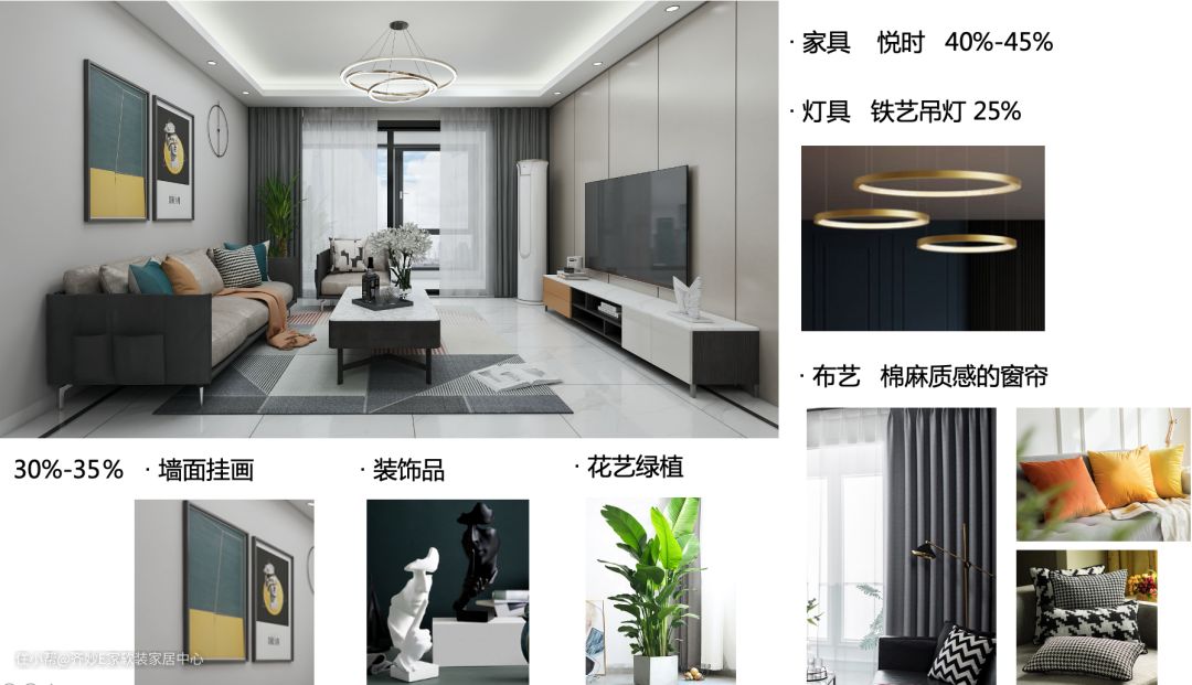 记住这个比例:家具占40~45%,灯具 占25% 其他占30~35%