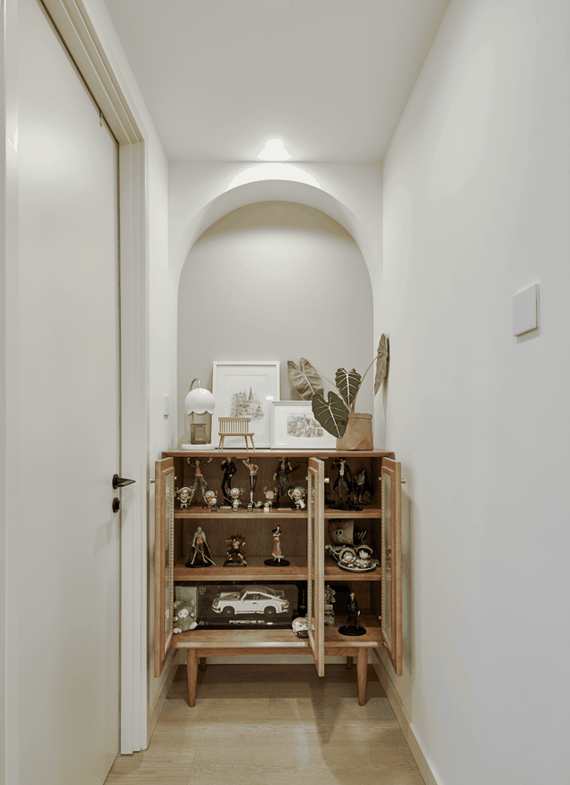 改小卧室之后,增加的走廊景观丰富了空间的艺术品味,屋主的手办也有了容身之所。