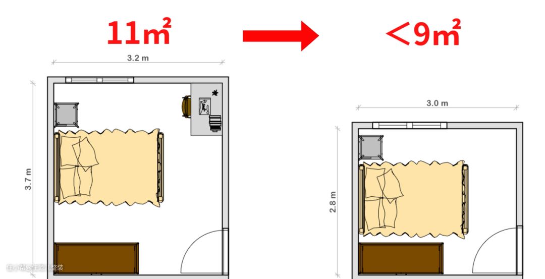 前面说过,近二十年的新建住宅,已经再朝“厅大屋小”的趋势演变了,卧室仍旧大的,不外乎两种情况: