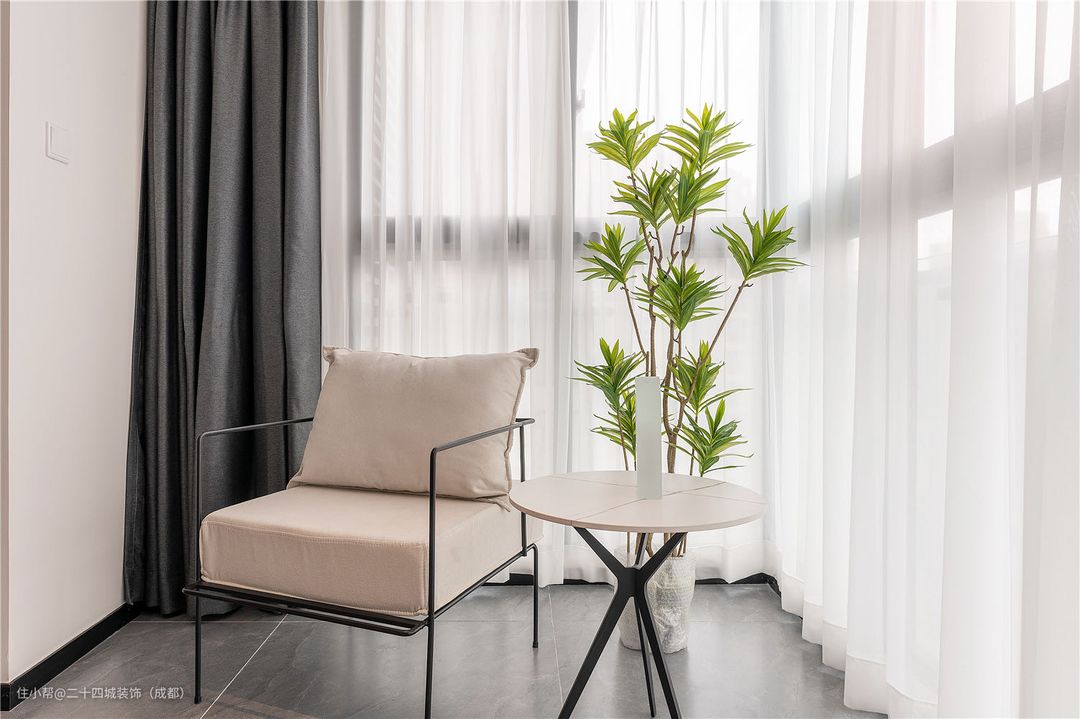 衣帽间,半隐藏式柜体,仿佛与墙面融为一体。整面落地窗大气漂亮。