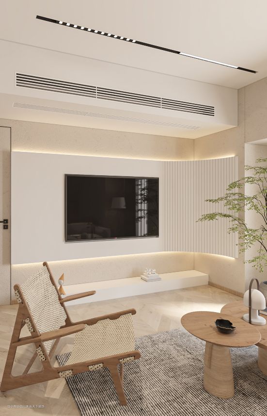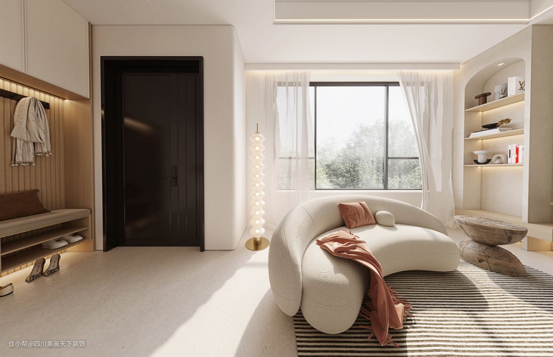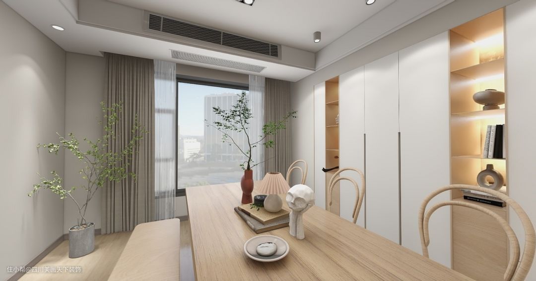 灯光上:灯光以柔和为主,隐藏式光源。灯具款式以天然、哑光为主,尽量避免选择亮面金属材质。木质、哑光、隐藏式光源是侘寂风的最佳选择。