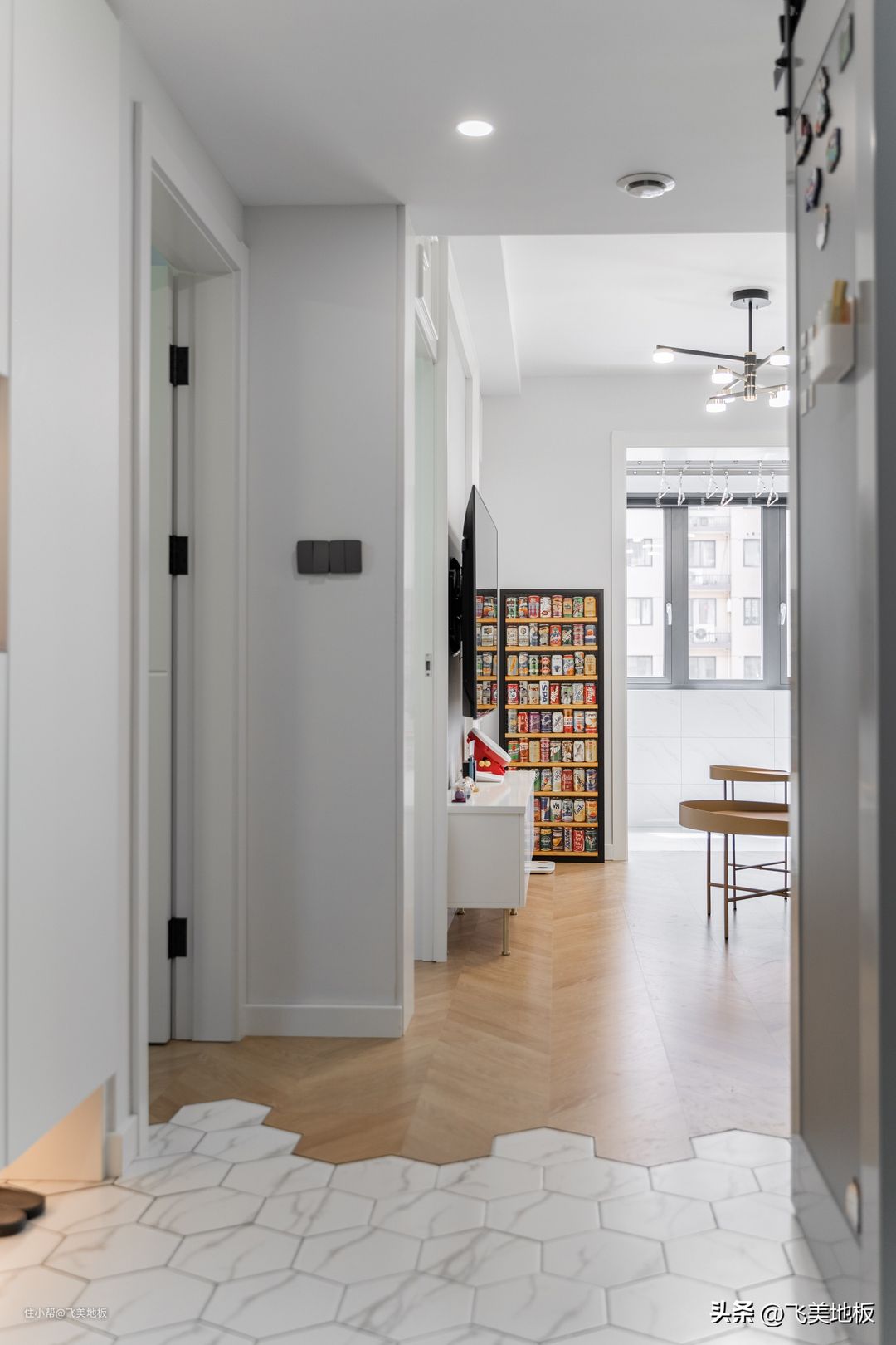 ③ 一般来说,鱼骨拼的尺寸更小一点,不仅适合大户型的全屋通铺,而且对小户型也很友好,想要平平无奇的小户型增光添彩,最值得花的一笔钱,一定是给家里铺上一款貌美的鱼骨拼地板啦!