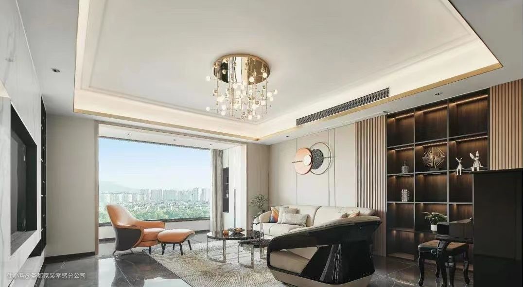 大面积的落地窗,能360°引光入室,也能让空间更显利落和大气。