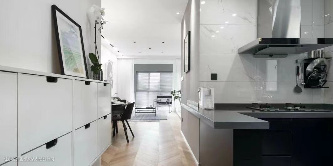 将客餐厨阳台等功能区放在一个开放式的空间里,不仅能让光线得以尽情入驻,还让视线无所阻碍,更显舒朗开阔之感。