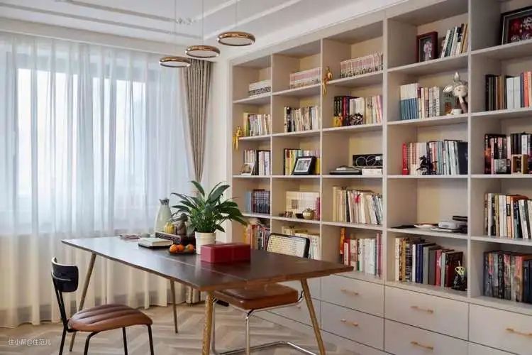 墙面的利用应该是大家最为熟悉的,在承重墙上,大家多会用通顶柜或者满墙的书架来利用。