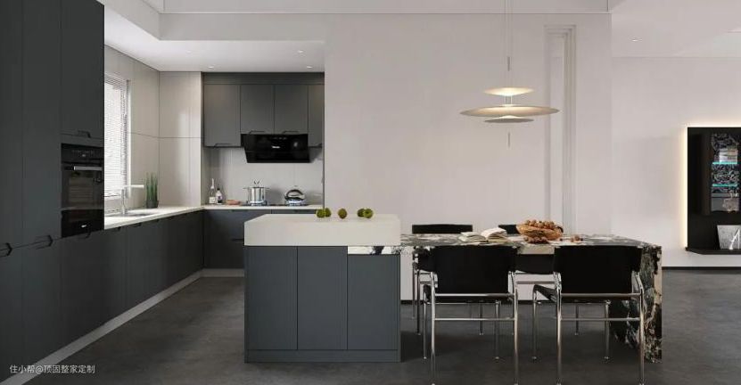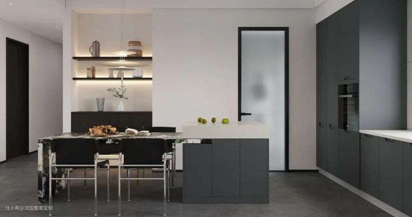 开放式西式厨房设计,中岛台与餐桌连结,在这里无论是烹饪还是用餐都是一种享受。