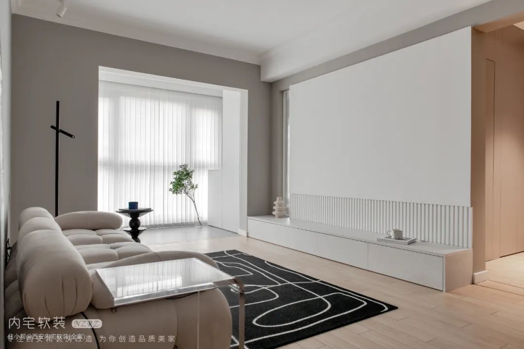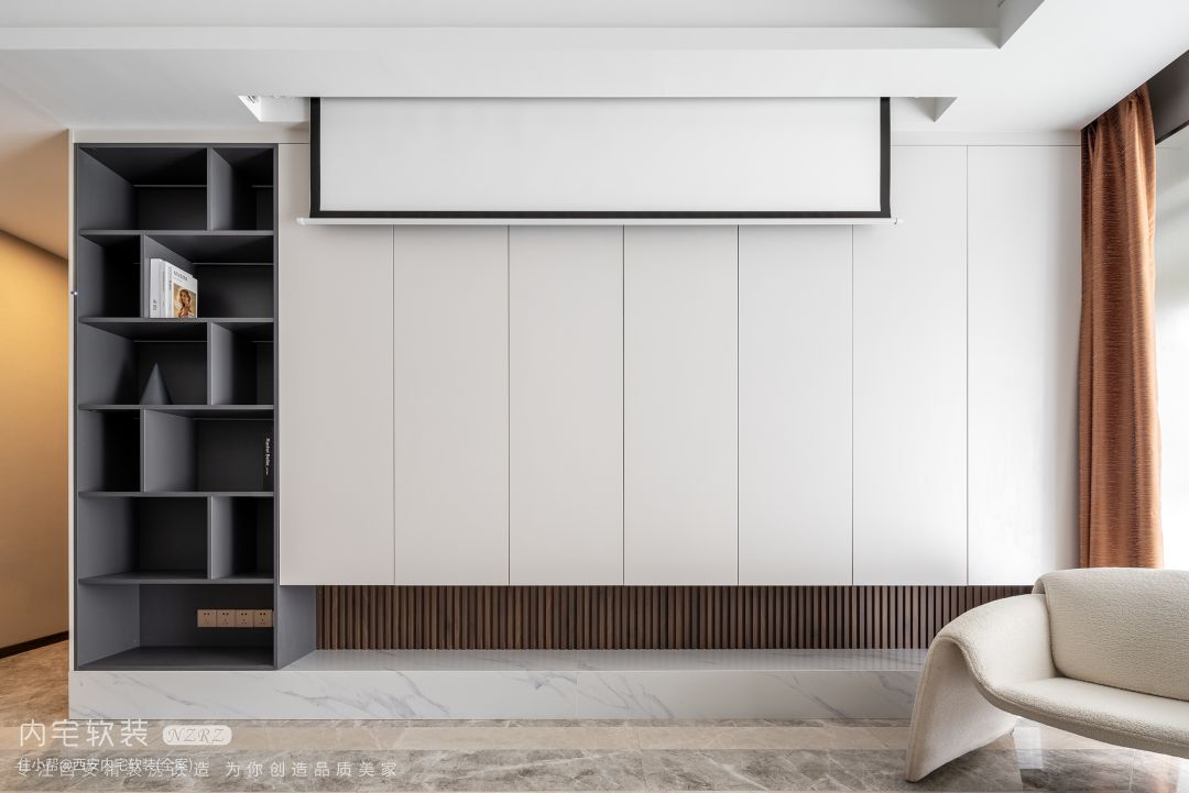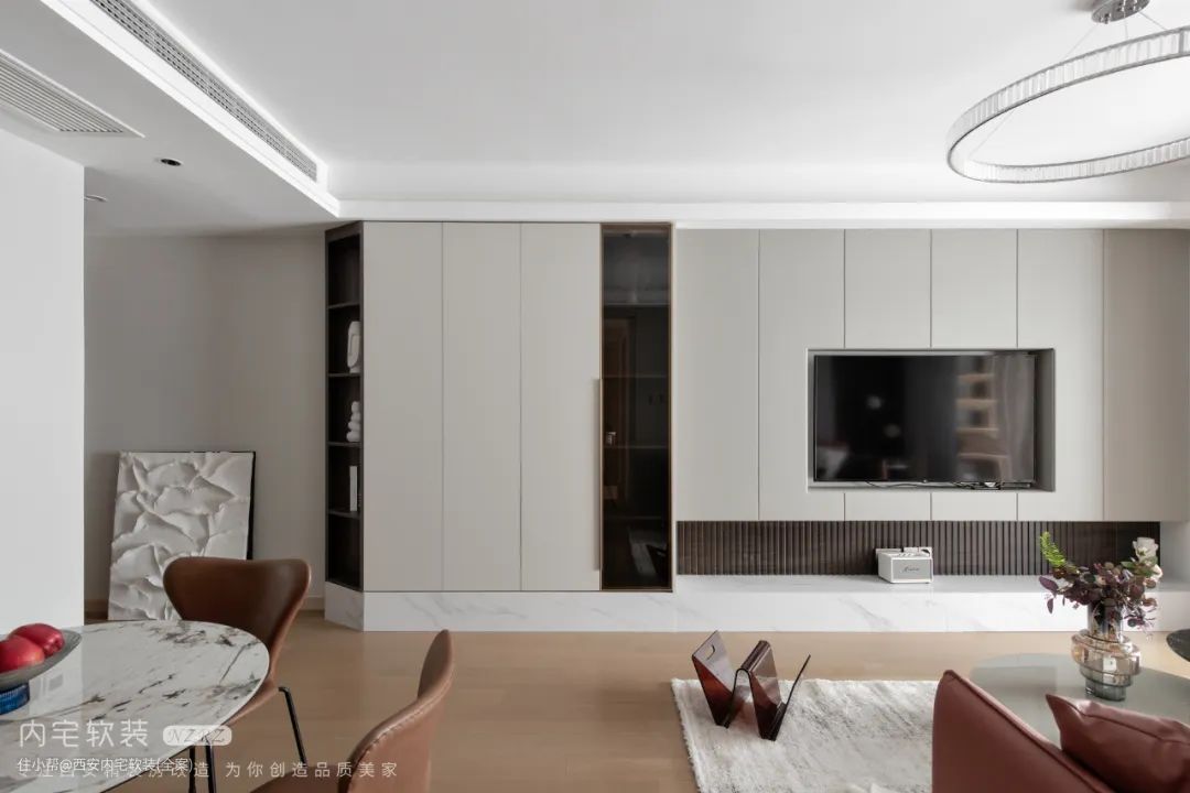 如果对于电视的需求不大,可以考虑舍弃电视,更显客厅的轻薄感。