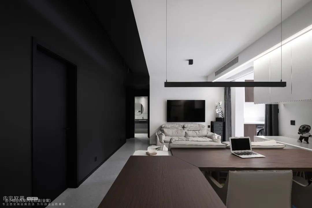 在软装选择上,可以以耐脏的深色系为主,大大减少做家务的频率。