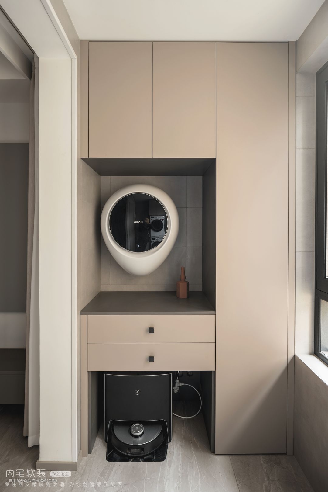 定制顶天立地柜体,顶部不留卫生死角。