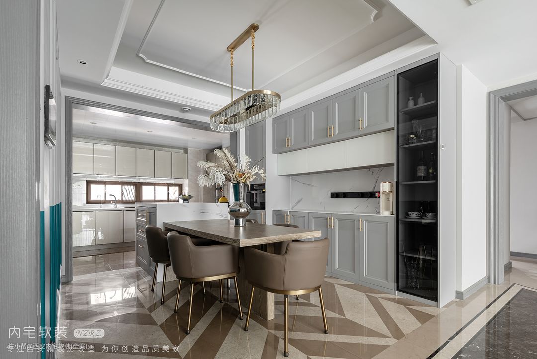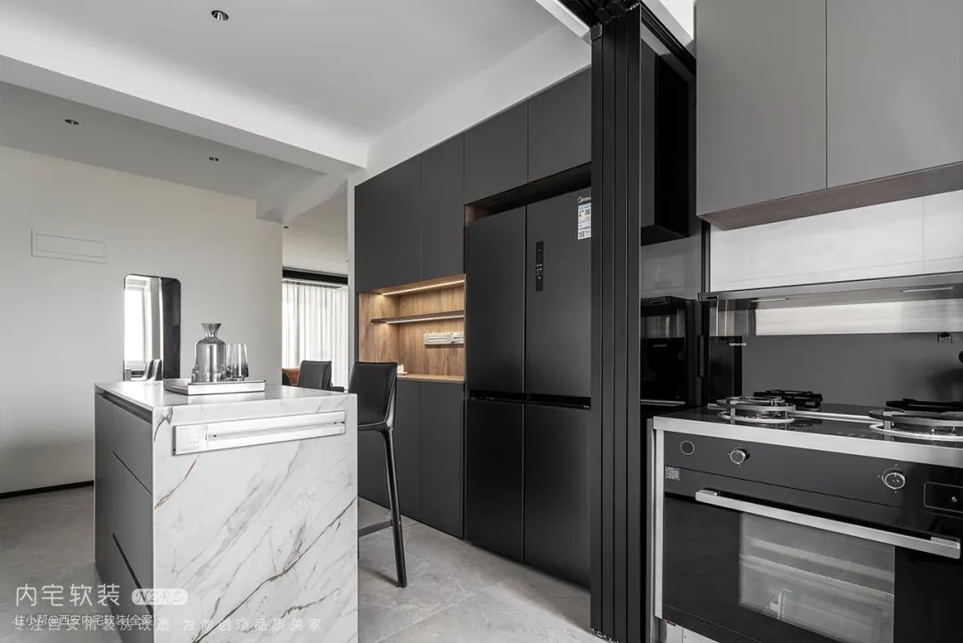 餐厅增加岛台,在岛台上增加烤箱、水槽,可让一家人互动烘焙,足够的空间也可以方便家人处理菜品。