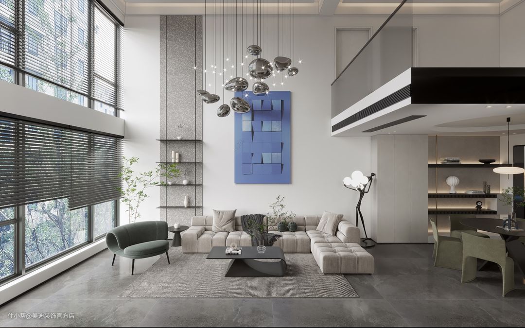 💭将原有楼梯位置的餐厅区域保留出超大的挑空区域,拉升空间感。