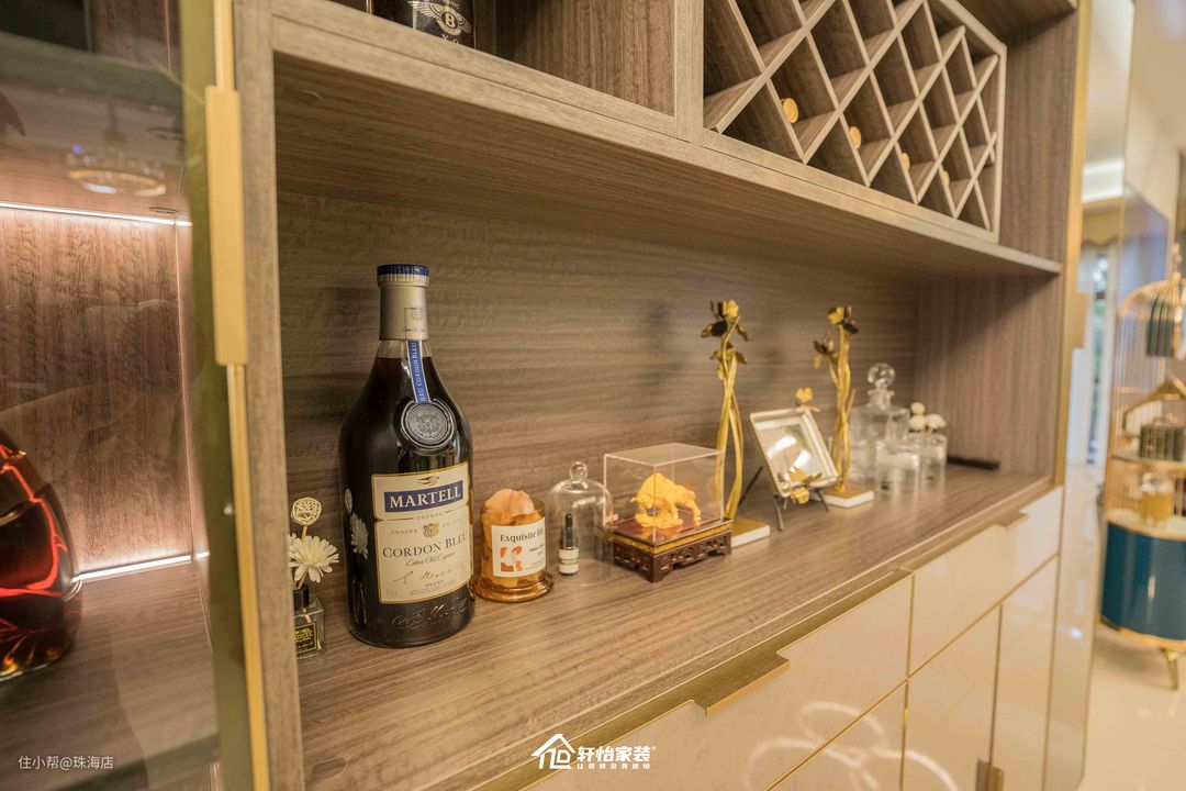 收纳酒柜做通顶设计,大大增加了储物空间,而且顶部不藏灰,方便清洁打扫,而且收纳酒柜是和墙用特质胶水粘在一起的,看来设计师贴心的考虑到柜子倒掉酒也就毁了这一点呢!