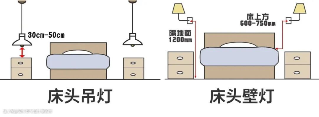 有睡前阅读或者玩手机习惯的,卧室需要安装床头吊灯,代替顶灯提供阅读照明。高度要提前确定好,太高或太低都会影响照明效果。