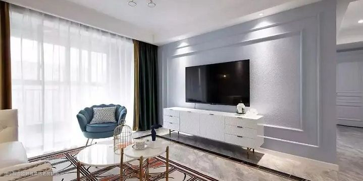 石膏线背景墙。不同于乳胶漆电视墙的简约,石膏线电视墙的亮点在于“能丰富墙面层次”,简单的线条构建起不同的模块,让原本平整的墙面瞬间拥有立体感。再搭配着金属元素的灯或者装饰性的花束,精致感直线UP
