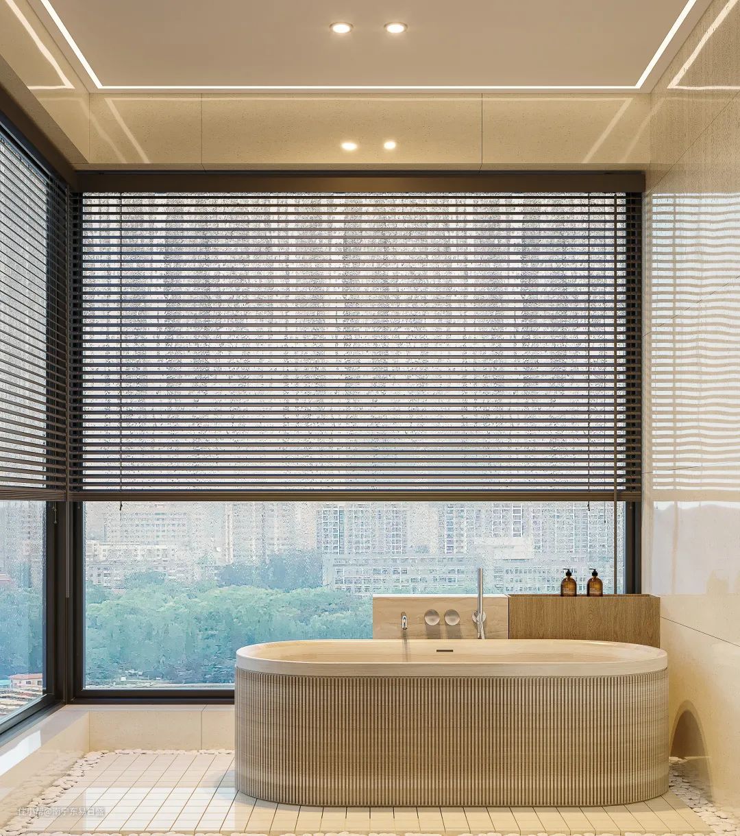 次卧阳台做了一个大浴缸,平时可以泡泡澡放松身心,忙碌了一天的疲惫感消失殆尽,治愈感满满。不用担心被看到哦,百叶窗封闭性还是很好的!